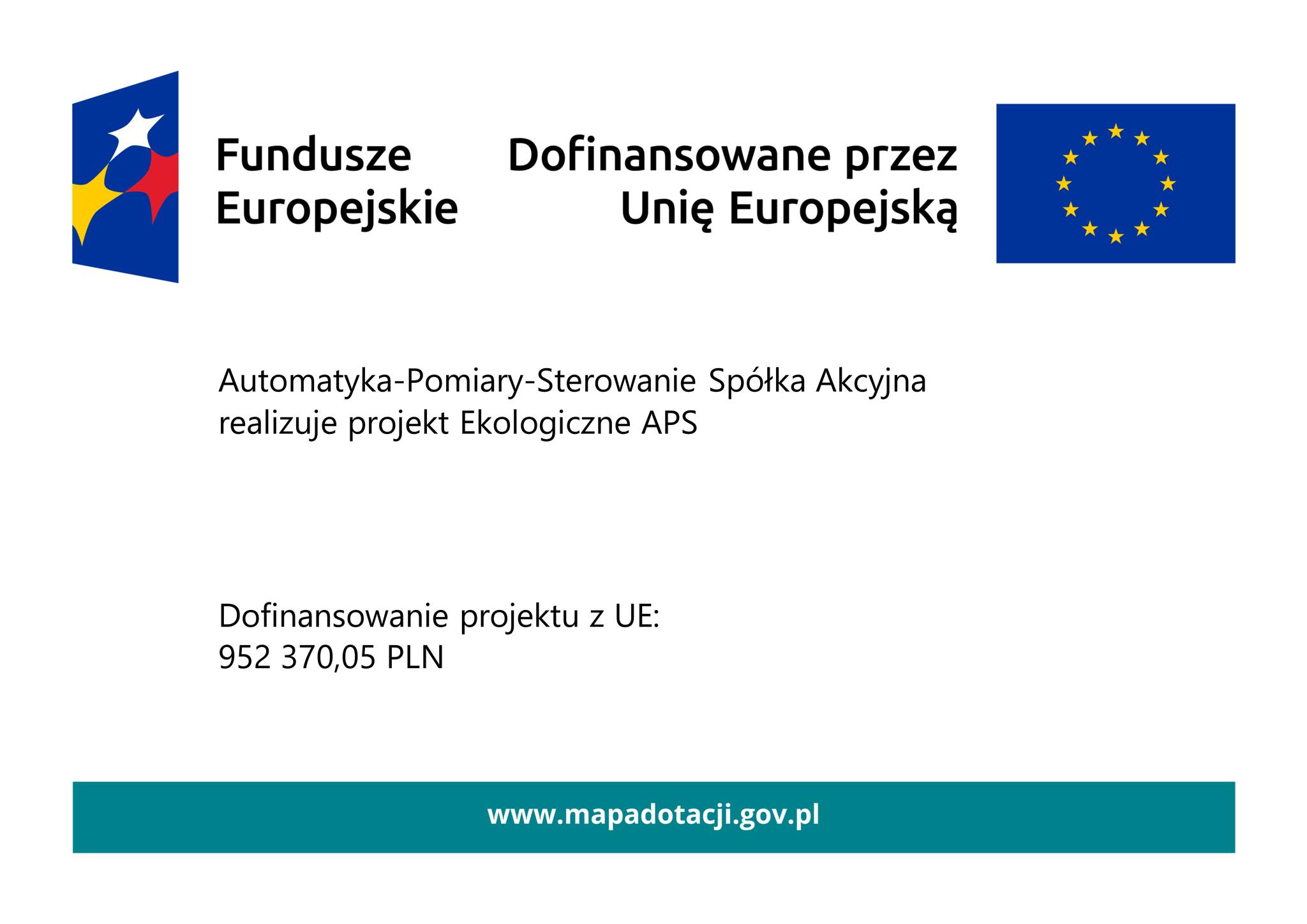Automatyka-Pomiary-Sterowanie Spółka Akcyjna podpisała umowę o dofinansowanie projektu pt. „Ekologiczne APS” w ramach Działania 3.01 Kredyt Ekologiczny Programu Fundusze Europejskie dla Nowoczesnej Gospodarki na lata 2021-2027, współfinansowanego ze środków Europejskiego Funduszu Rozwoju Regionalnego.