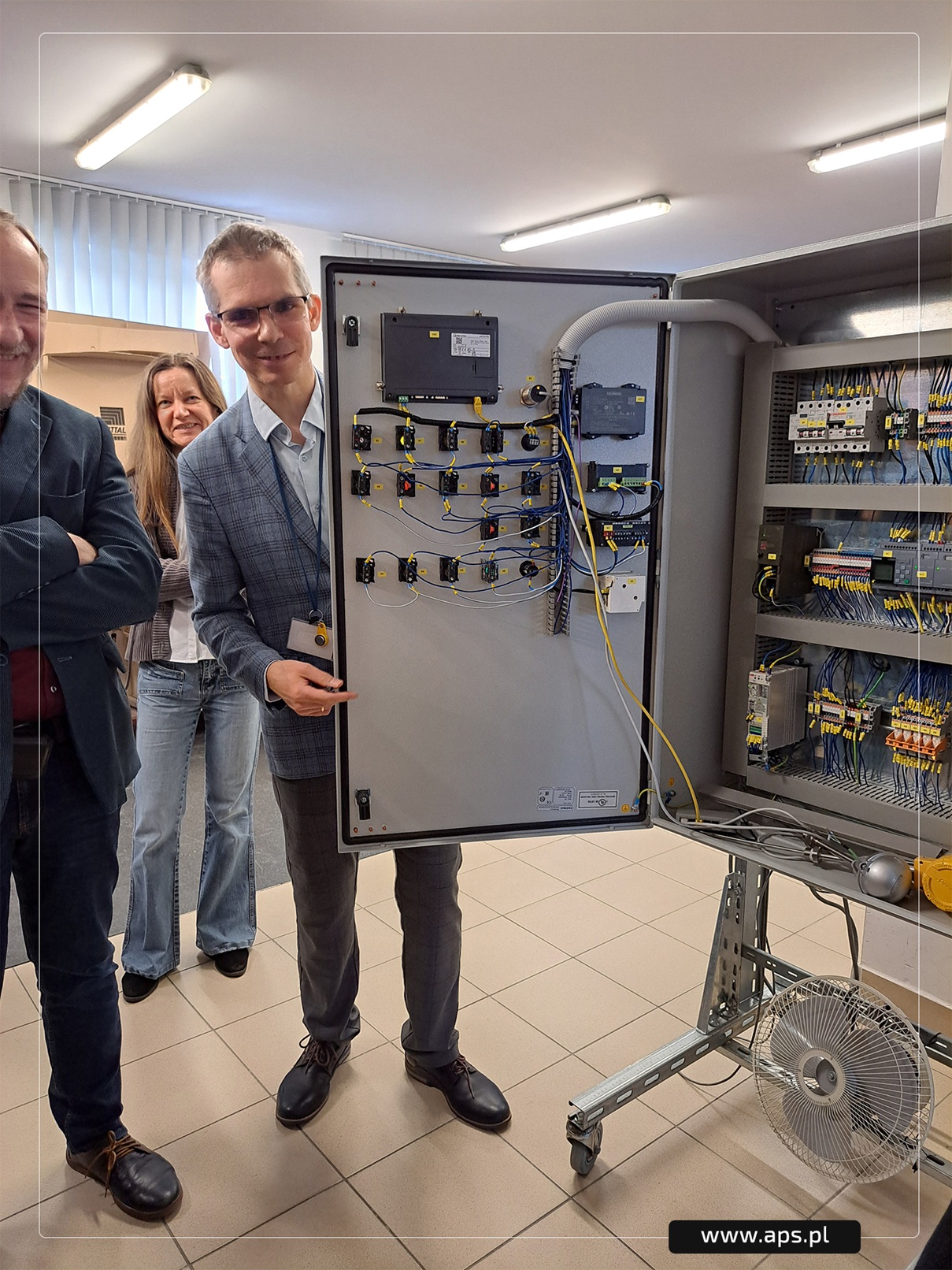 Szczególnym punktem spotkania była prezentacja szafy sterowniczej, wykonanej przez tegorocznych praktykantów i stażystów. Jakub, jeden z wykonawców szafy, zaprezentował jej działanie, w tym sterowanie elementami wykonawczymi zarówno w trybie ręcznym, jak i automatycznym – poprzez sterownik LOGO.